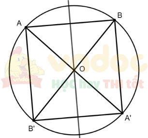 Vì O là tâm đối xứng của đường tròn nên A' và B' cũng thuộc (O)