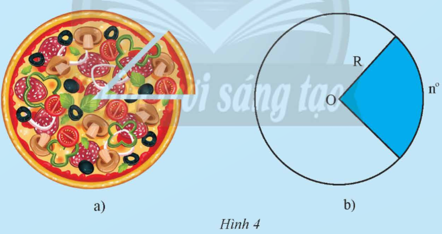 a) Ta có thể tính diện tích của miếng bánh pizza trong Hình 4a theo góc ở tâm và bán kính của ổ bánh hay không?