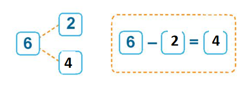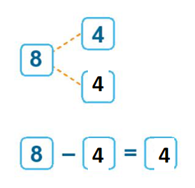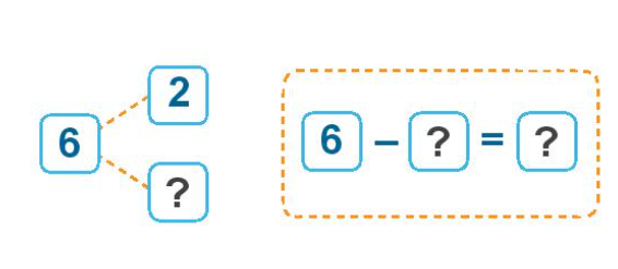 Dựa vào hình vẽ và cách tách số để điền số còn thiếu vào ô trống.