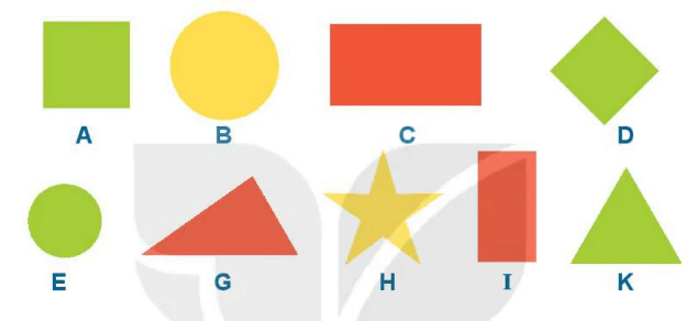 Học sinh dựa vào hình dạng của các hình vuông, hình tròn, hình tam giác, hình chữ nhật để trả lời yêu cầu đề bài.