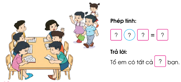 a) Tổ em có 6 bạn, sau đó có thêm 3 bạn nữa. Hỏi tổ em có tất cả mấy bạn?