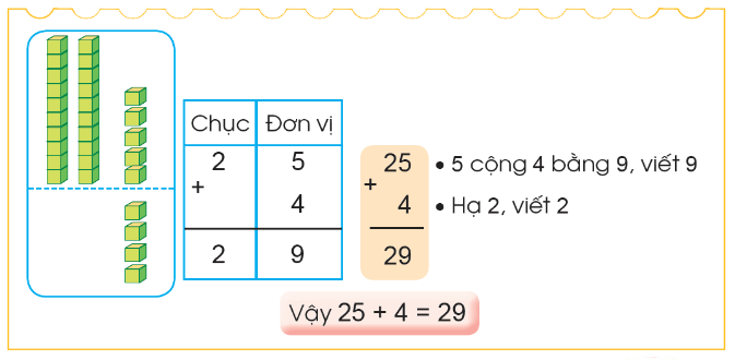 Toán lớp 1 Cánh diều: Phép cộng dạng 25 + 4, 25 + 40