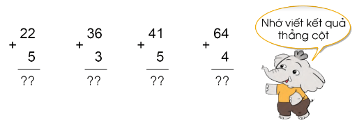 Học sinh đặt tính, viết cá chữ số cùng hàng thẳng cột với nhau. Thực hiện tính cộng các chữ số lần lượt từ phải sang trái.