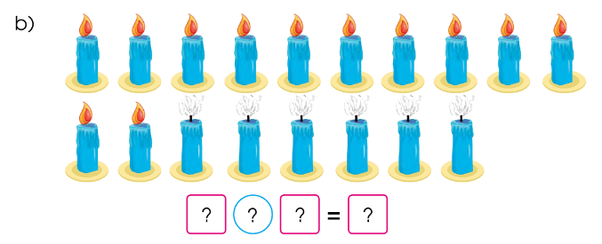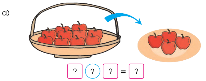 Học sinh quan sát tranh rồi viết phép tính thích hợp trong bức tranh.