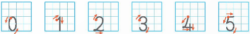 Dựa vào sự hướng dẫn của cô giáo, các em học sinh hãy tập viết các số 0, 1, 2, 3, 4, 5.