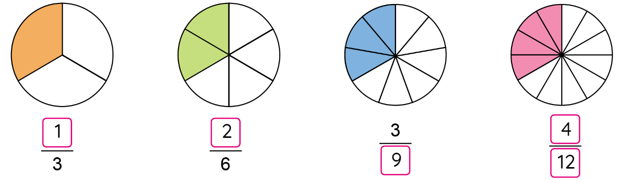 \(\frac{1}{3}=\frac{2}{6}\)