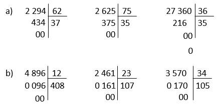| b) 4 896 : 12 | 2 461 : 23 | 3 570 : 34 |