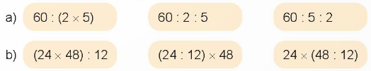 Vậy 60 : (2 × 5) = 60 : 2 : 5 = 60 : 5 : 2