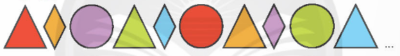 Quan sát hình vẽ, các hình được sắp xếp theo quy luật: Hình vuông, hình chữ nhật, hình bình hành, hình thoi rồi tiếp tục lặp lại như vậy.