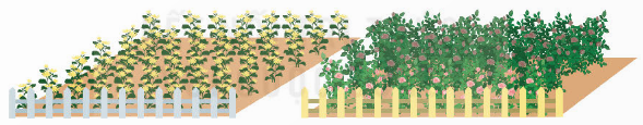 Trường Tiểu học Hoà Bình có hai mảnh vườn trồng hoa. Mảnh vườn trồng hoa hồng dạng hình chữ nhật có chiều dài 14 m, chiều rộng 10 m. Mảnh vườn trồng hoa cúc dạng hình vuông có cạnh 12 m.