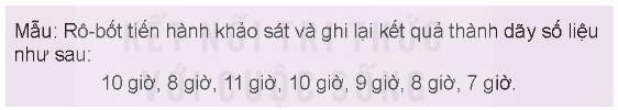a) Hãy thực hiện một cuộc khảo sát về số giờ ngủ trong một ngày của các bạn trong nhóm em và ghi lại kết quả thành dãy số liệu (theo mẫu).