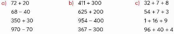 a) 72 + 20 = 92 68 – 40 = 28 350 + 30 = 380 970 – 70 = 900 |