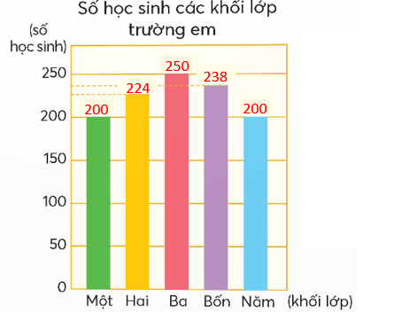 – Khối lớp Ba có nhiều học sinh nhất, khối lớp Một và khối lớp Năm có ít học sinh nhất.