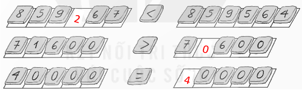 Đặt mỗi viên gạch ghi các số 0, 2, 4 vào một ô có dấu “?” để được kết quả đúng.