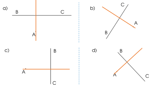 Vẽ đường thẳng đi qua điểm A và vuông góc với đường thẳng BC trong mỗi trường hợp sau: