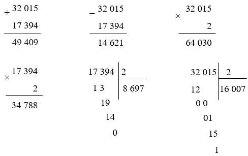 Hai số bất kì: 32 015 và 17 394