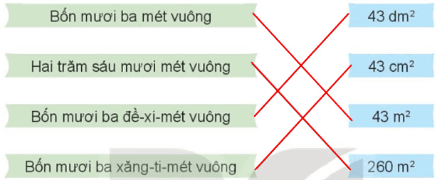 Chọn số đo phù hợp với diện tích mỗi đồ vật dưới đây.