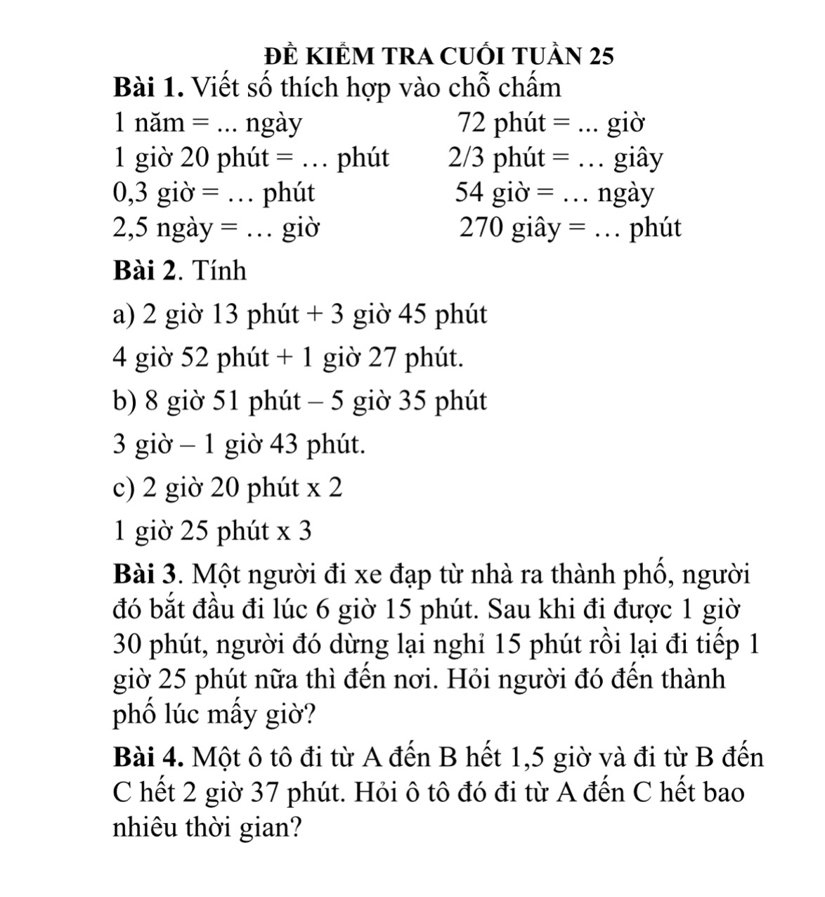 Một người đi xe đạp từ nhà ra thành phố, người đó bắt đầu đi lúc 6h 15 phút