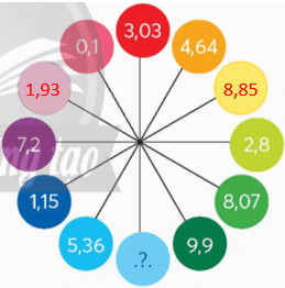 Quy luật của vòng tròn: tổng hai số đối diện nhau bằng 10.