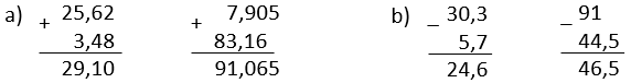 b) 30,3 – 5,7 91 – 44,5 |