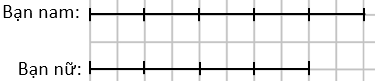 Viết tỉ số của số bạn nam và số bạn nữ dưới dạng phân số tối giản rồi vẽ sơ đồ đoạn thẳng thể hiện tỉ số đó.