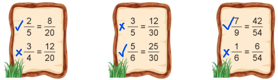 \(\frac{3}{4}=\frac{12}{16} ; \ \ \ \frac{3}{5}=\frac{12}{20} ; \ \ \ \frac{1}{6}=\frac{6}{36}\)