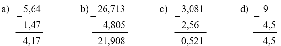 - Viết dấu phẩy ở hiệu thẳng cột với các dấu phẩy của bị trừ và số trừ.