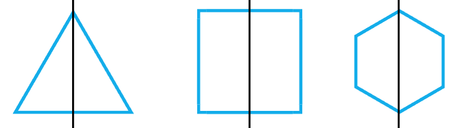 2. Làm tương tự như HĐ6 với hình tam giác đều, hình vuông, hình lục giác đều. Em hãy chỉ ra một trục đối xứng của mỗi hình trên.