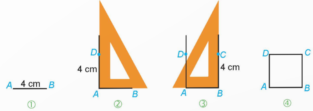 1. Vẽ hình vuông ABCD có cạnh 4 cm theo hướng dẫn sau: