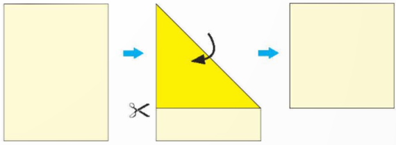 3. a) Hãy gấp và cắt một hình vuông từ tờ giấy hình chữ nhật như hình bên.