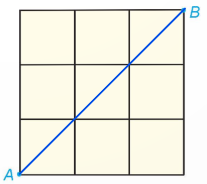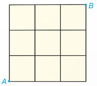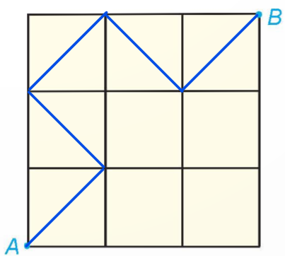 Quan sát hình dưới và chỉ ra ít nhất hai cách, để một con kiến bò từ A đến B theo đường chéo của các hình vuông nhỏ.