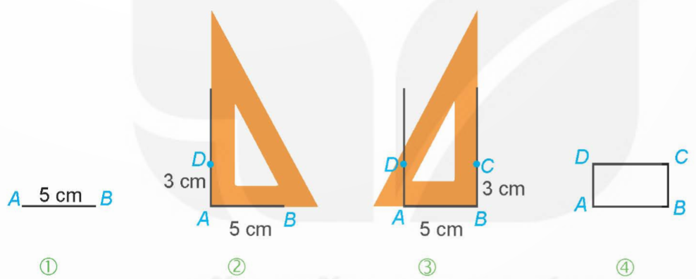 1. Vẽ hình chữ nhật ABCD có một cạnh bằng 5 cm, một cạnh bằng 3 cm theo hướng dẫn sau: