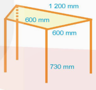 2. Một chiếc bàn khung thép được thiết kế như hình bên. Mặt bàn là hình thang cân có hai đáy lần lượt là 1 200 mm, 600 mm và cạnh bên 600 mm. Chiều cao bàn là 730 mm. Hỏi làm một chiếc khung bàn nói trên cần bao nhiêu mét thép (coi mối hàn không đáng kể)?
