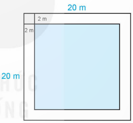 Một mảnh vườn hình vuông cạnh 20 m. Người ta làm một lối đi xung quanh vườn rộng 2m thuộc đất của vườn. Phần đất còn lại để trồng trọt. Tính diện tích trồng trọt của mảnh vườn.