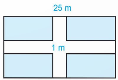 \(\frac35\) chiều dài. Người ta làm hai lối đi rộng 1 m như hình vẽ. Phần đất còn lại dùng để trồng cây. Tính diện tích đất dùng để trồng cây.