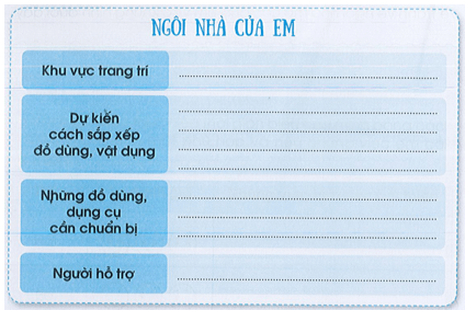 Vở bài tập HĐTN lớp 3 trang 24 Hoạt động 2: Hãy xây dựng ý tưởng trang trí một nơi yêu thích ở ngôi nhà của em vào phiếu sau: