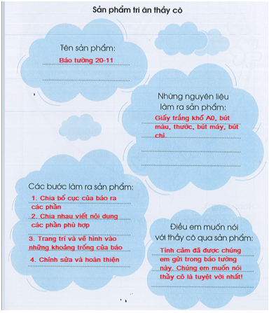 Vở bài tập HĐTN lớp 3 trang 27 Hoạt động 1: Giới thiệu về sản phẩm tri ân thầy cô của em.