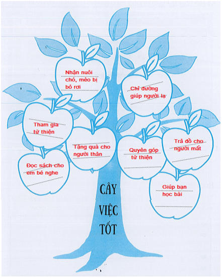 Vở bài tập HĐTN lớp 3 trang 33 Hoạt động 3: Viết những việc tốt em mong muốn thực hiện với những người xung quanh lên Cây việc tốt.