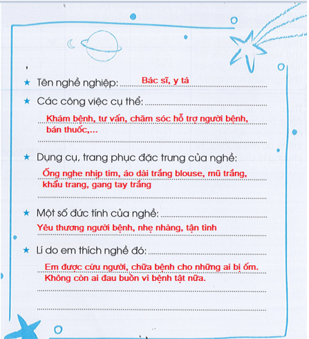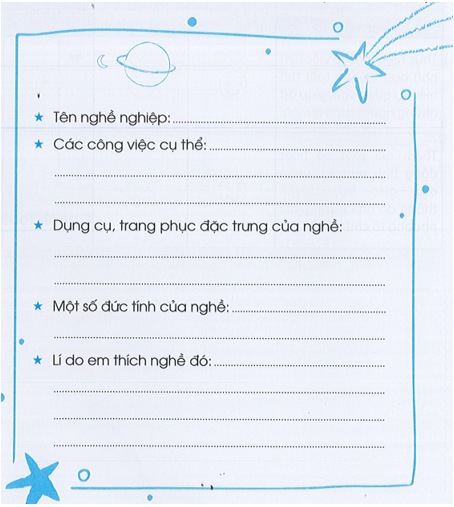 Vở bài tập HĐTN lớp 3 trang 39 Hoạt động 3: Hãy viết một đoạn văn về nghề em yêu thích theo gợi ý: