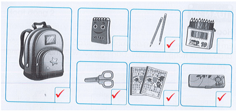 Vở bài tập HĐTN lớp 3 trang 42 Hoạt động 2: Em sử dụng tiền tiết kiệm để mua các sản phẩm, đồ dùng phục vụ việc học tập. Đánh dấu ü vào những sản phẩm, đồ dùng em cần mua.