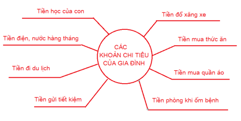 Vở bài tập HĐTN lớp 3 trang 43 Hoạt động 3: Hãy vẽ sơ đồ về các khoản chi tiêu của gia đình em.