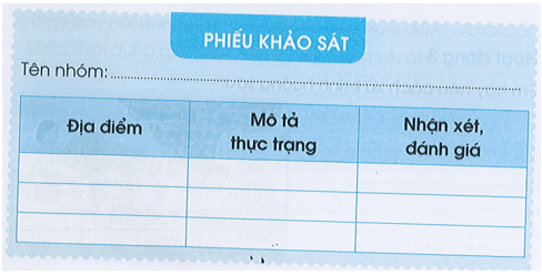 Vở bài tập HĐTN lớp 3 trang 50 Hoạt động 2: Khảo sát thực trạng môi trường quanh em và hoàn thành phiếu sau: