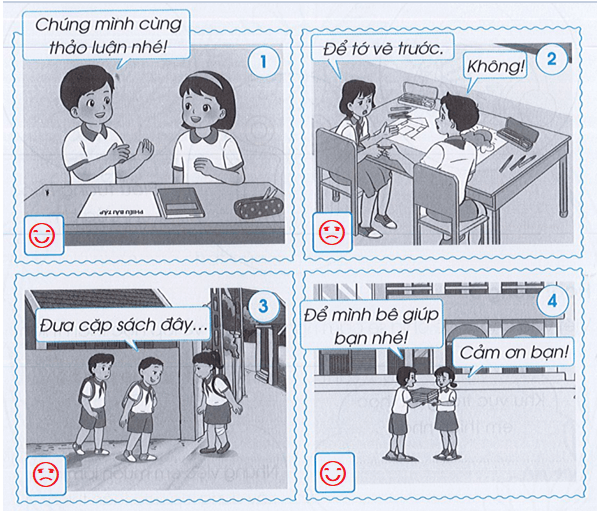 Em đồng tình với bạn ở hình 1 và 4 vì các bạn biết cùng làm việc nhóm và biết giúp đỡ nhau. Đây là những việc tốt nên làm.