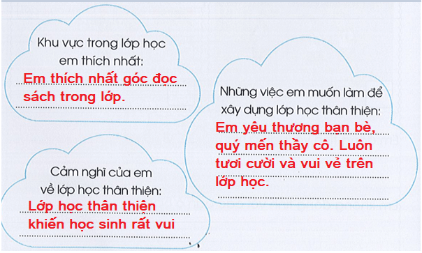 Vở bài tập HĐTN lớp 3 trang 8 Hoạt động 3: Viết vào chỗ … để chia sẻ cảm nghĩ của em về lớp học thân thiện.