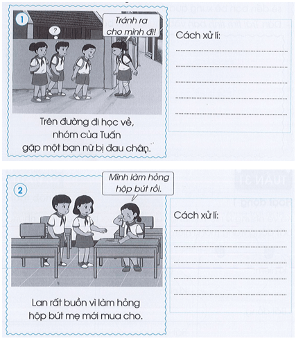 Vở bài tập HĐTN lớp 3 trang 66 Hoạt động 2: Em hãy xử lí các tình huống sau: