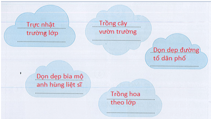 Vở bài tập HĐTN lớp 3 trang 76 Hoạt động 1: Kể tên các hoạt động lao động do nhà trường hoặc địa phương tổ chức mà em đã tham gia.