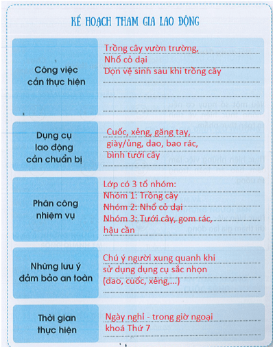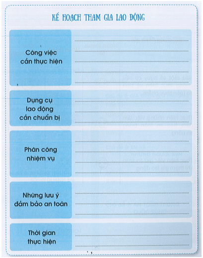 Vở bài tập HĐTN lớp 3 trang 77 Hoạt động 3: Em hãy xây dựng kế hoạch tham gia lao động đảm bảo an toàn tại gia đình và địa phương.