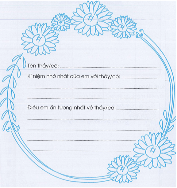 Vở bài tập HĐTN lớp 3 trang 9 Hoạt động 1: Viết về kỉ niệm của em với thầy cô mà em nhớ nhất.