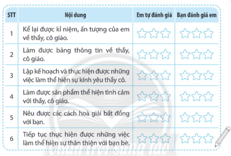 1. Em tự đánh giá và bạn đánh giá em và tô màu vào các ngôi sao.