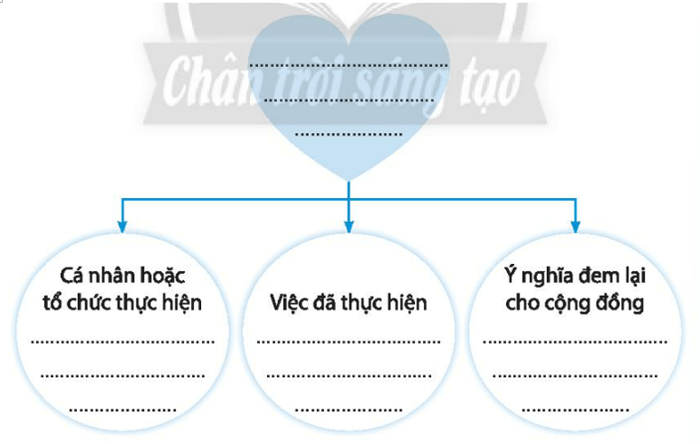 2. Hoàn thành sơ đồ tư duy về một hoạt động tình nguyện, nhân đạo ở địa phương em theo hướng dẫn: